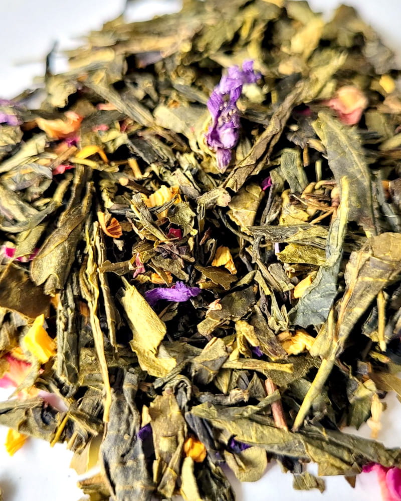 To mieszanka zielonej herbaty senchy z dodatkiem kwiatów róży, malwy i słonecznika oraz aromatem mango i bergamotki. Ma świeży i lekki kwiatowy aromat i delikatny smak. Idealna na letnie poranki ale i nie tylko.