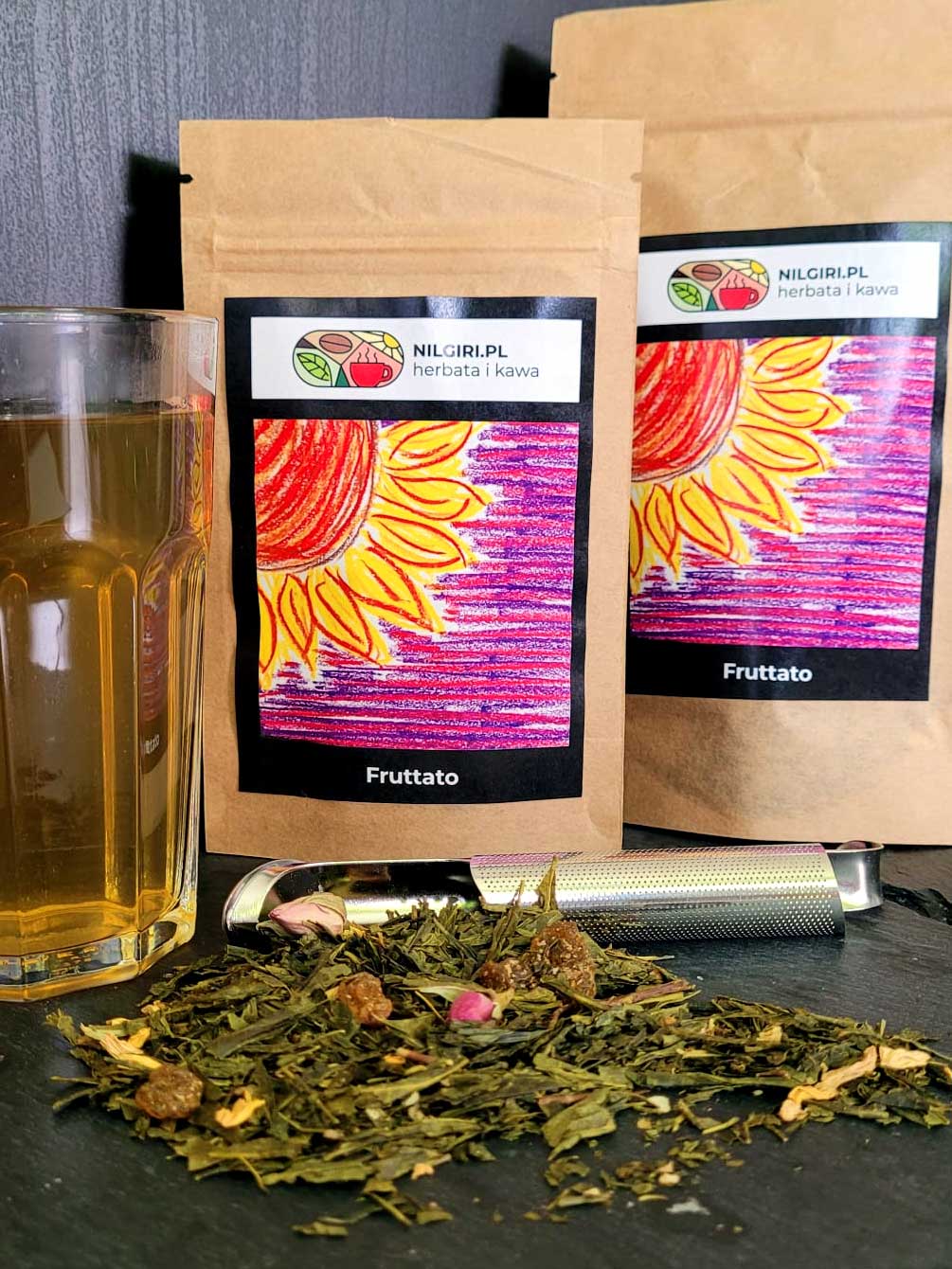 FRUTTATO - Herbata zielona z dodatkiem paków róż, kwiatów słonecznika oraz rodzynek