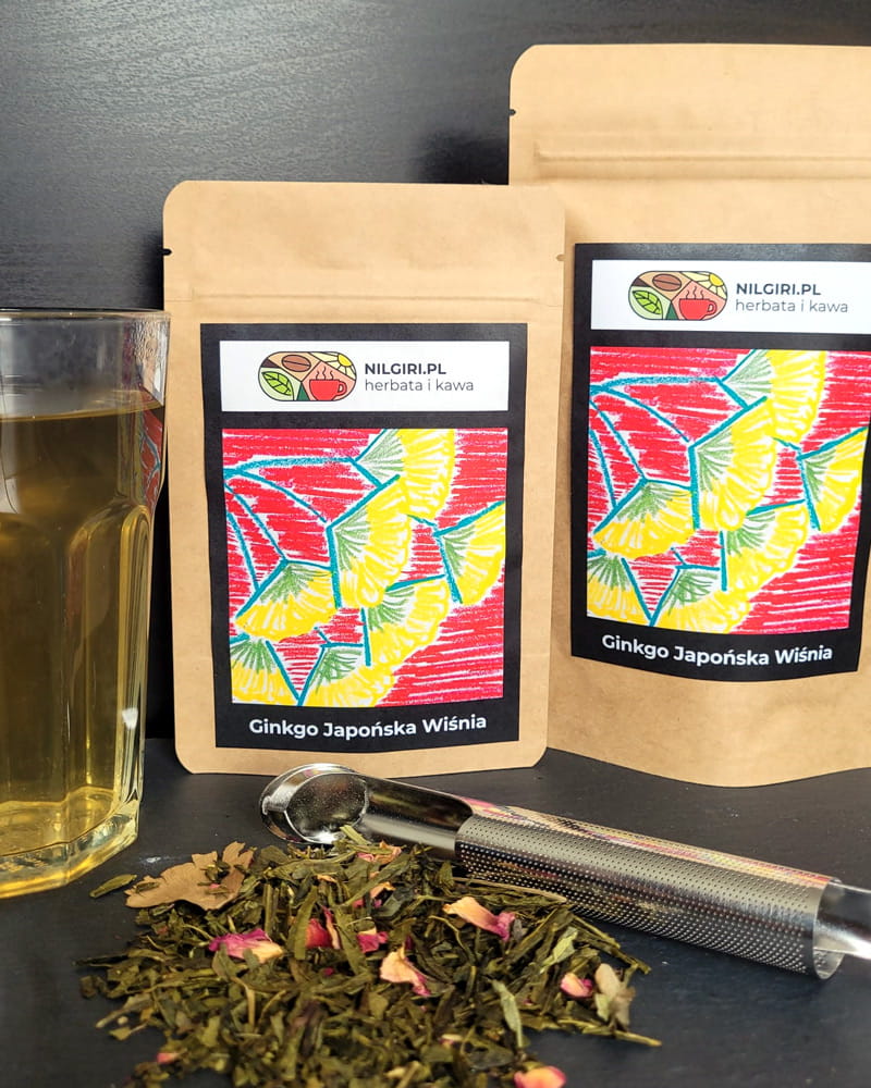| Skład | herbata zielona Sencha, cięte liście miłorzębu dwuklapowego (Ginkgo Biloba L.), płatki róży, aromat |