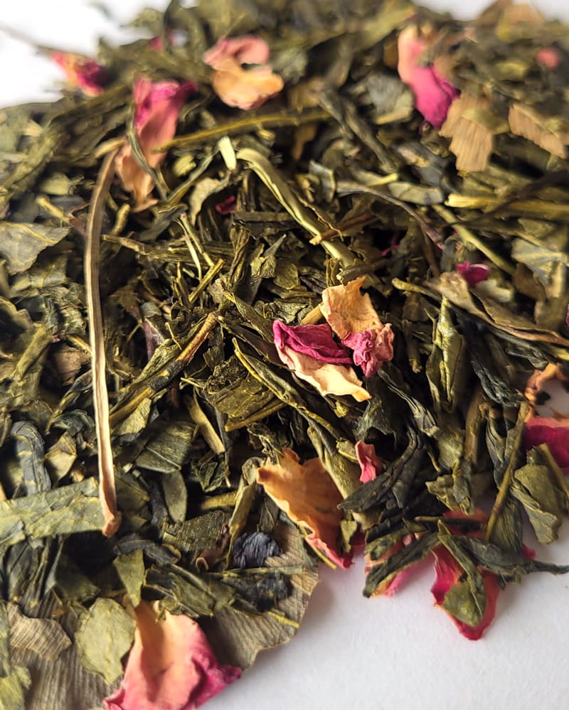 Bazę tej herbaty stanowi sencha, słynąca z delikatnego, świeżego aromatu i lekkiej goryczki. Jej naturalne nuty trawy doskonale komponują się z o liśćmi miłorzębu dwuklapowego oraz płatkami róży. Całość nadaje naparowi głęboki, soczysty smak. Idealna na gorące letnie dni do parzenia na zimno.