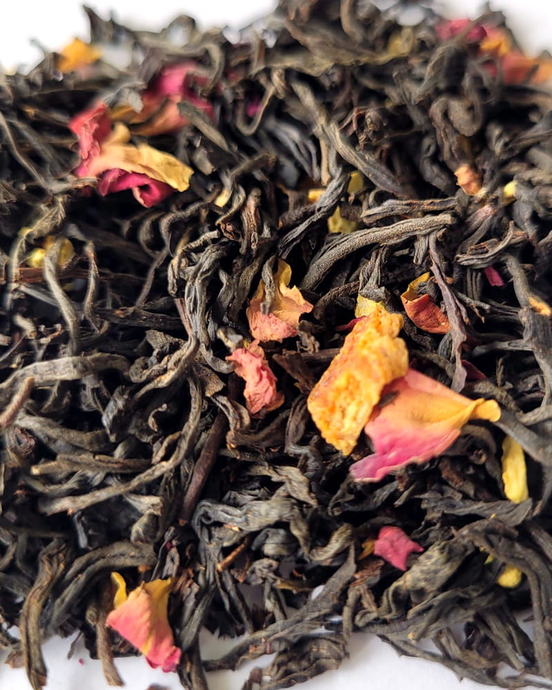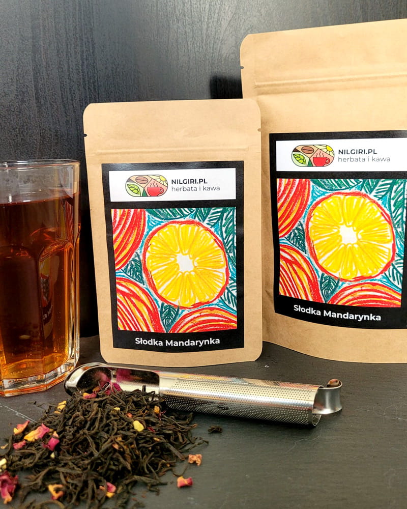 Słodka kompozycja herbaty czarnej z dodatkiem mandarynki, pomarańczy i płatków róży. To połączenie przypadnie do gustu miłośnikom pachnących cytrusami czarnych herbat. Idealne połączenie delikatnych i słodkich smaków. Dobrze rozgrzeje w chłodniejsze wieczory ale i orzeźwi w cieple dni.