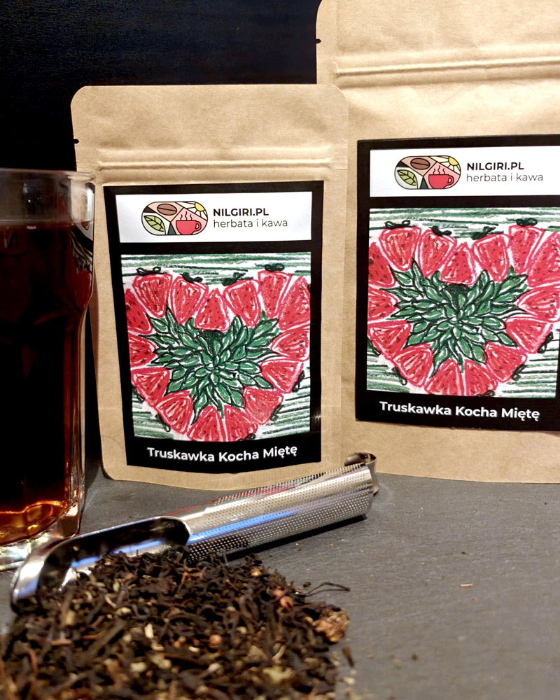 | Skład | herbata czarna, truskawki liofilizowane, mięta, aromat |